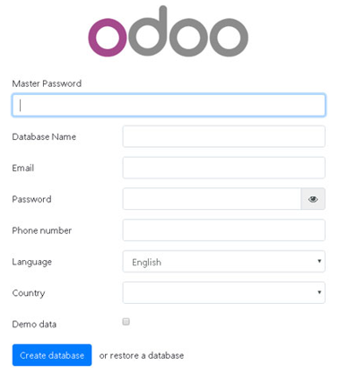 If everything went well, you will be greeted with the Odoo 13 starting screen: